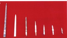 玉石针(商周) 分类:器具技法 | 作者:admin | 发布时间:2025-05-24 11:10 | 阅读:35 | 字数:46字 | 0 | 0 阅读:35 | 46字 | 0 | 0 收藏单位:广州中医药大学医史博物馆藏 质地:玉石质 大小:最长18cm,最短2.5cm