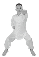 3.提示:此式操作重点看似在于双手,实则是力发全身。将全身之意气力贯于拳掌,使全身形、气、神都得到充分的锻炼。