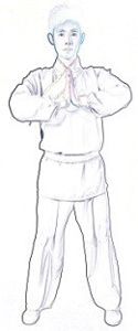 合掌相抵,掌指均要用力;习练既久,调心时屏气,重点体会体腔内由胸到腹部放松的感觉。