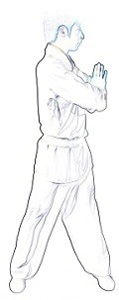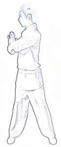 外转身时,双掌与胸之间如同紧紧挤压一个球。