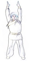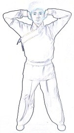 (4)松劲回至中央。左侧身5次,然后右侧身5次,恢复起式。