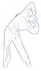 侧身时,注意双足十趾抓地,始终用力扣住耳门;侧身至最大程度,并稍作停留。