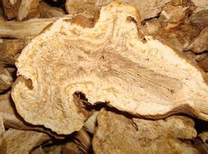 为菊科植物白术的干燥根茎。主产于浙江、安徽等地。以个大、质坚实、断面黄白、香气浓者为佳。