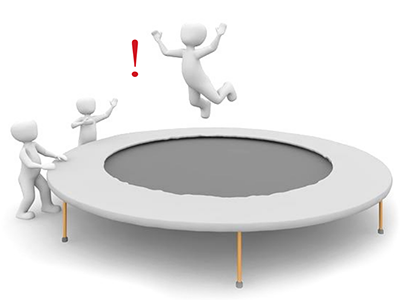 “人体炸弹”这种游戏就是在蹦床场地设置一个高大的气垫,人站在高处往下跳,另一端躺在低处的人就会被弹入旁边的海洋球池中,类似于玩跷跷板一样,但危险性大。如果参与者没有可靠安全防护措施,动作要领又不熟悉,当人被弹起的一瞬间,缺少手臂协同保护动作,头部先着地,就会很容易造成颈椎外伤,特别是颈椎过度屈曲损伤,致使颈椎错位或骨折,从而损伤脊髓神经。近年来,蹦床越来越受到年轻人的喜爱,由于其空间感和刺激性,这项运动也暗藏着不少危险,悲剧每年都在发生。据相关报道,有些盲目参与者不仅伤及颈椎,引起可怕后果,有的还会伤及腰椎骨,手腕、脚踝关节等。