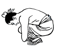 屈膝下蹲,低头成团状。重心前、右、后、左移动,重心还原。