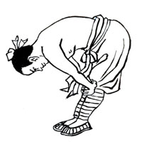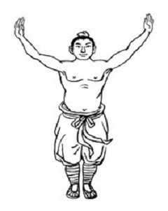 松静站立。咬牙,舌抵上腭,双目平视,调匀鼻息。
