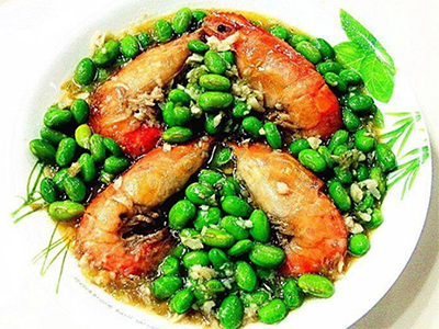 此道菜肴,毛豆与高蛋白低脂肪的罗氏虾,荤素搭配,营养丰富。毛豆绵糯,大虾鲜嫩,汤汁香浓,口感味美,适合各类人群食用。