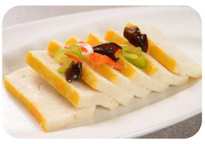 鱼糕营养丰富,是以鱼肉和鸡蛋为原料做成的,相对其他荤菜口感比较清淡。比如制作鱼糕一般选用鱼刺较少的草鱼、鲈鱼。《本草纲目》中记载草鱼有暖胃和中的功效。《医林纂要》中记载草鱼可以“平肝,祛风,治痹,截疟。治虚劳及风虚头痛,截久疟。其头蒸食尤良。”《嘉佑本草》中记载鲈鱼“补五脏,益筋骨,和肠胃,治水气。”《本草衍义》中记载鲈鱼“益肝肾。”