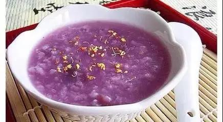 然后另行烧水,加入梗米煮粥。待粥熟时,再加入紫苏叶液和红糖,搅匀即成。此粥略甜。