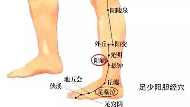 阳辅穴在小腿的外侧,脚外踝关节上方四寸的位置。