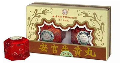“安宫牛黄丸”是清代温病学家吴瑭所创,载于其所著《温病条辨》卷一,亦名牛黄丸、新订牛黄清心丸、安宫丸。其原方药物组成有牛黄、郁金、犀角、黄连、朱砂、梅片、麝香、珍珠、山栀、雄黄、黄芩等11味药,传统剂型为蜜丸,即以蜂蜜炼成老蜜,和入上述药粉为丸,并以金箔盖衣,用蜡壳封固成蜡壳丸。