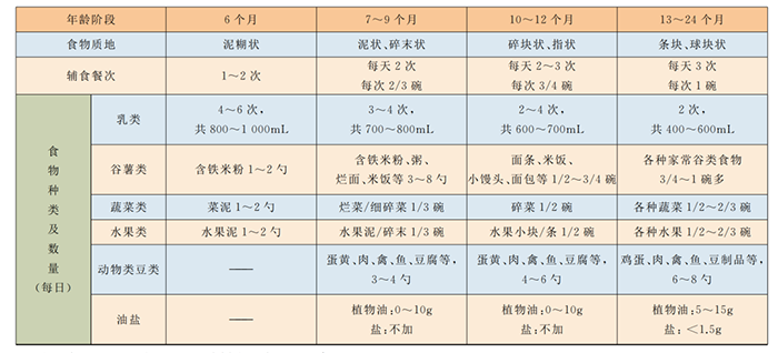 辅食添加是儿童从液体类食物逐步过渡为普通固体食物的一个特殊重要阶段,辅食是母乳喂养期间给予婴幼儿母乳之外的其他食物,以补充母乳营养的不足,这个过程基本在6~24月龄完成。辅食添加不仅为婴幼儿提供营养,还与饮食习惯养成、心理行为发展密切相关。